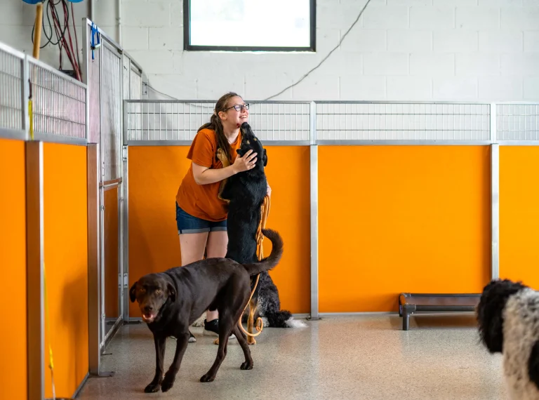 Boarding check out is by 12 PM daily at no additional charge. Dogs remaining after noon will be clocked into daycare at our half-day rate for up to 5 hours, and any dog staying longer than 5 hours will be charged the full-day daycare rate.